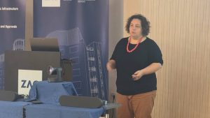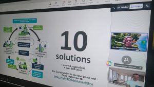 V svojem predavanju je predstavila finski pristop k zmanjševanju emisij v gradbeništvu. Poudarila je, da se na ravni EU razprave še vedno osredotočajo predvsem na energetsko učinkovitost in proizvodnjo energije brez ogljika, medtem ko so na Finskem emisije iz energetskega sektorja že občutno zmanjšane – tudi zaradi razogljičenja daljinskega ogrevanja.