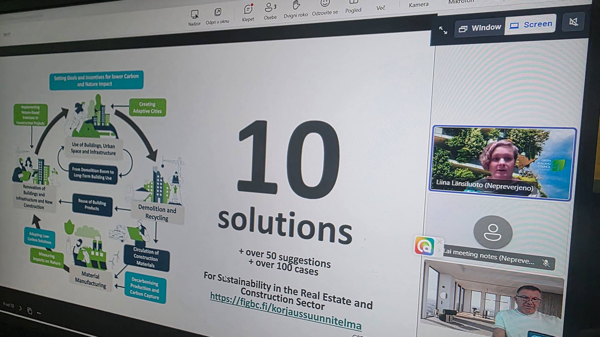 Fokus se tako vse bolj premika na nizkoogljično gradnjo in krožno gospodarstvo. Predstavila je tudi novo finsko zakonodajo, ki bo leta 2026 uvedla zavezujoče mejne vrednosti ogljičnega odtisa stavb – pomemben mejnik, ki bo služil kot zgled za druge evropske države.